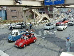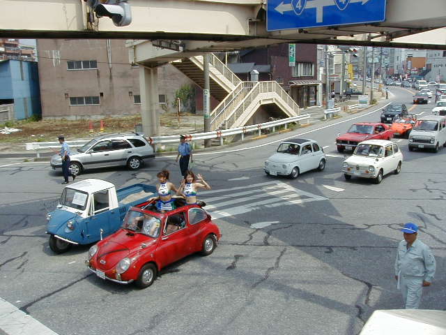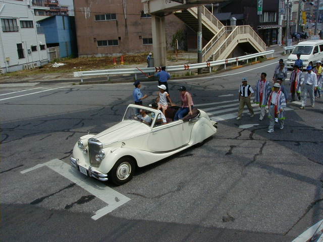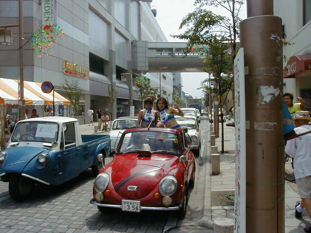 - パレードの様子。てんとうむしにレースクイーンが同乗。