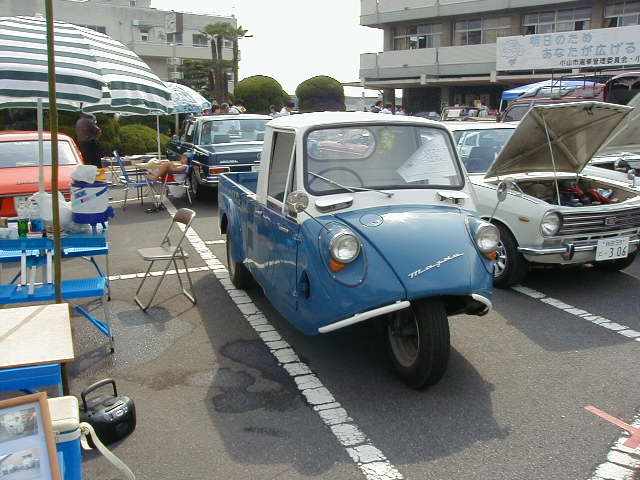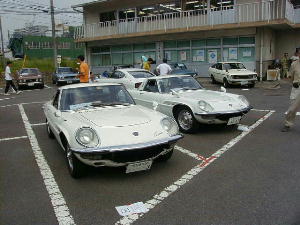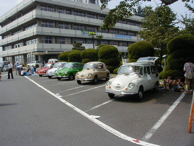 - お目当てのクラシックカーミーティングは、市役所の駐車場で行われ、