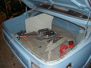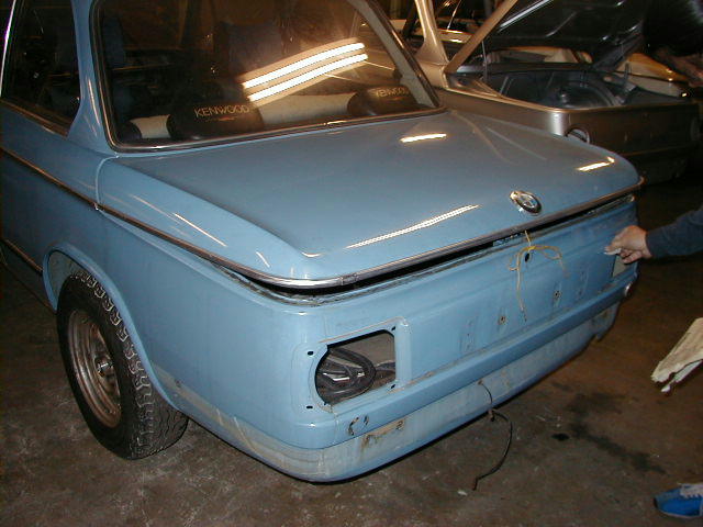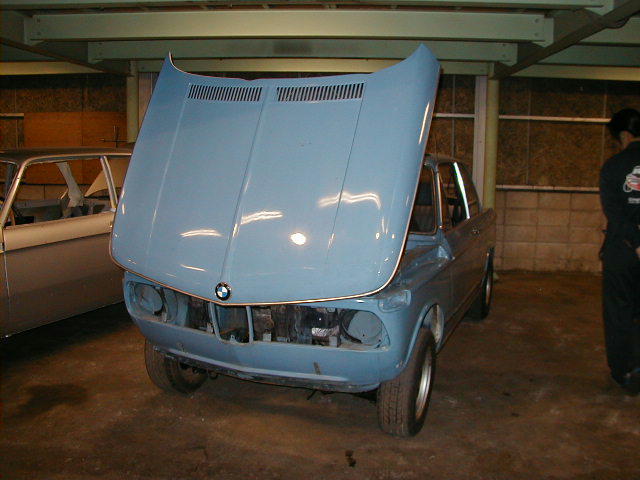 - 後ろから撮影。ライト等の外装部品が外されています。この後、内装をバラシ、塗装作業に入るとのことでした。