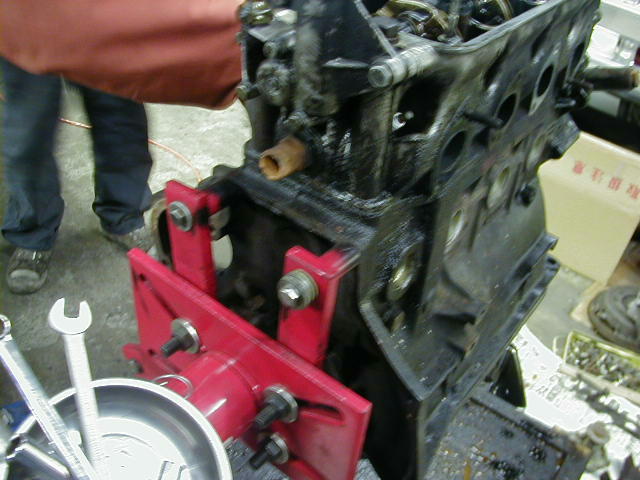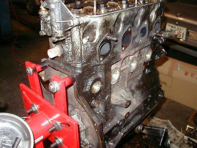 - 既に補機類は外され、エンジン本体をばらすところでした。
