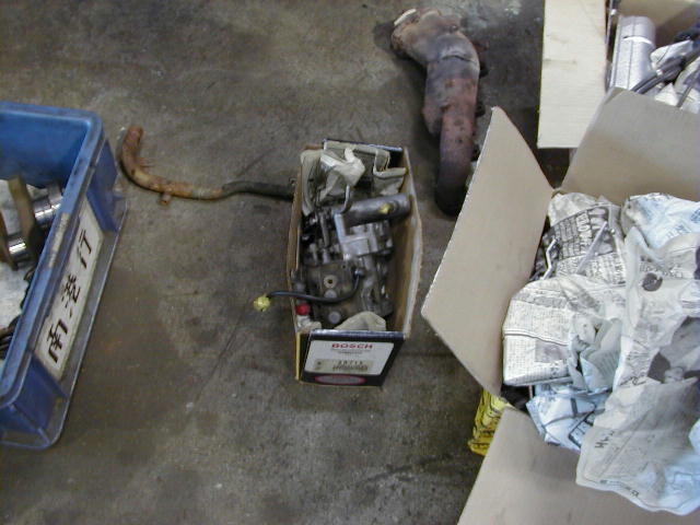 - <左>こちらは、段ボール箱の中で、組み付けの日が来るのを待つ補機類。